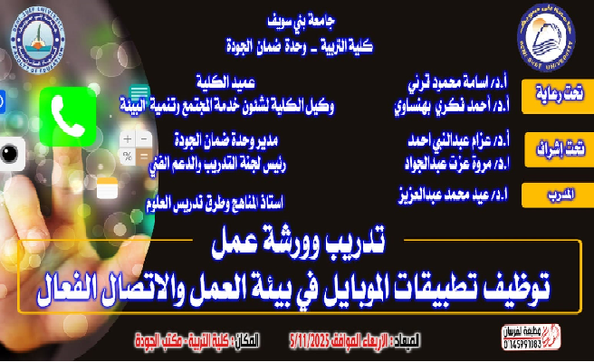 في إطار الاستعداد الجاد والحيوي لكلية التربية للتقدم للاعتماد المؤسسي، وانطلاقًا من رؤية الكلية نحو التميز والجودة المستدامة، وتحت رعاية الاستاذ الدكتور طارق علي رئيس جامعة بني سويف والاستاذ الدكتور أسامة محمود قرني عميد كلية التربية ...........